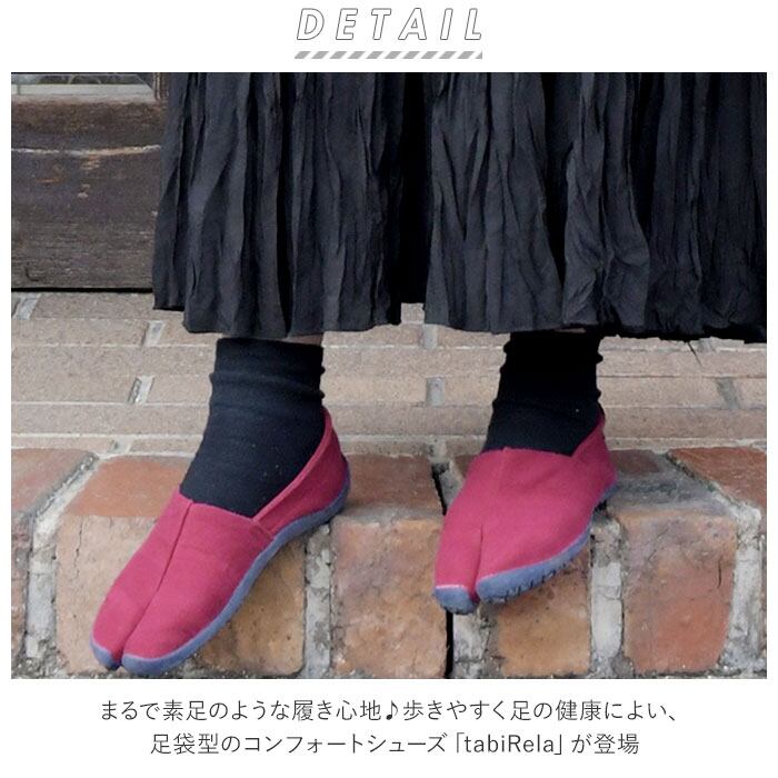・まるで素足のような履き心地♪歩きやすく足の健康によい、足袋型のコンフォートシューズ「tabiRela」が登場。