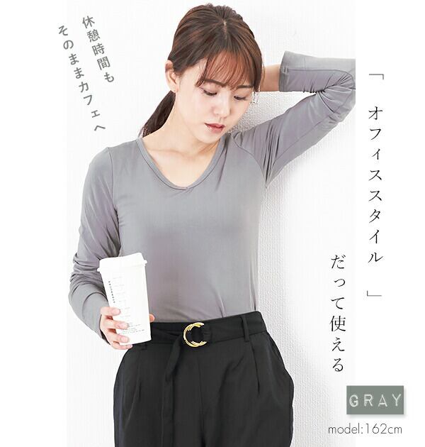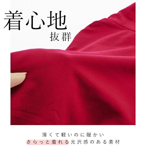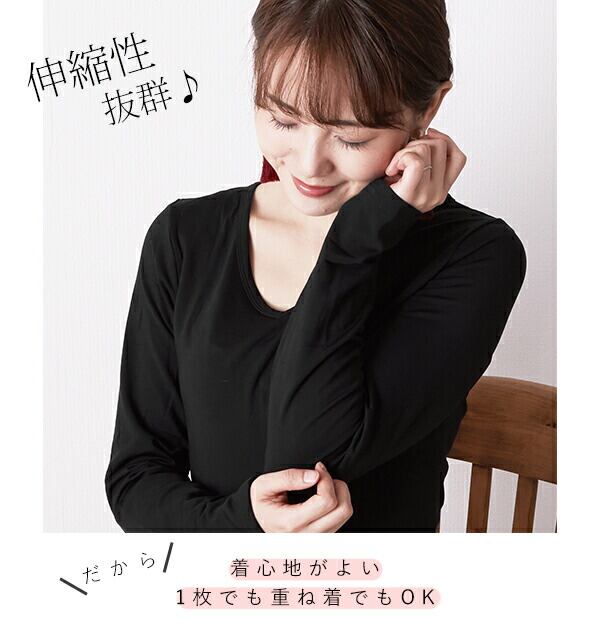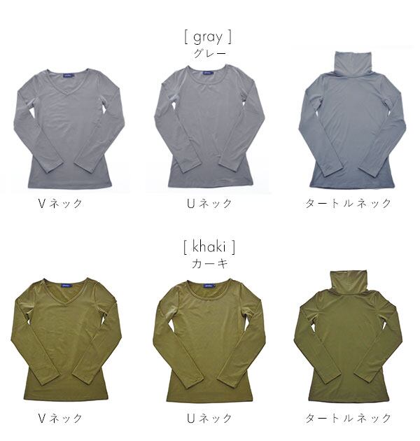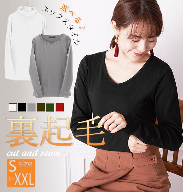 「薄手なのにあったかい…」生地の密度が高いので、風を通しにくく保温性の高い「あったか」裏起毛カットソーです。伸縮性抜群なので、着心地がよく、1枚でも重ね着でもOK! トップスとしてもインナーとしても、日々のコーデに大活躍します! オンでもオフでも上手に使い回せるベーシックカラーに、Uネック・Vネック・タートルネック、3種のネックスタイルからお好きなデザインを選択できます!
