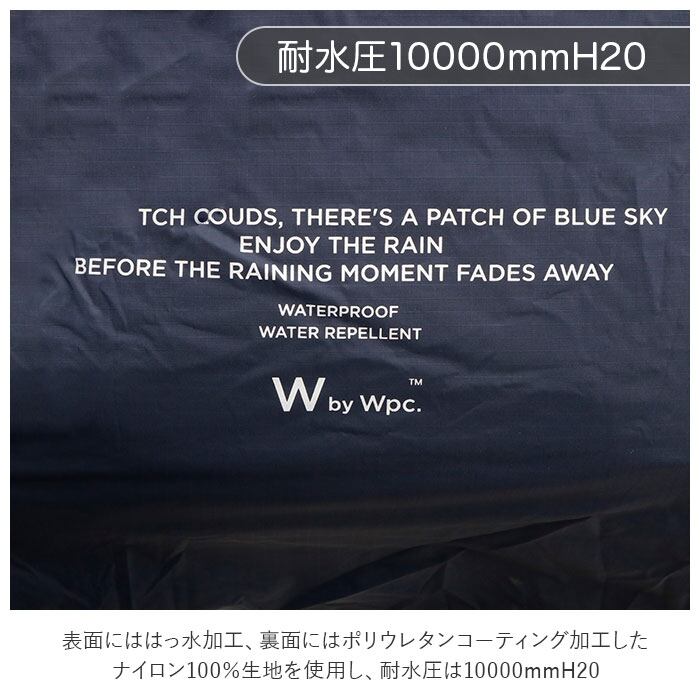 ・バックパックをすっぽりと覆って、雨から荷物をしっかり守る!表面にははっ水加工、裏面にはポリウレタンコーティング加工したナイロン100%生地を使用し、耐水圧は10000mmH20。