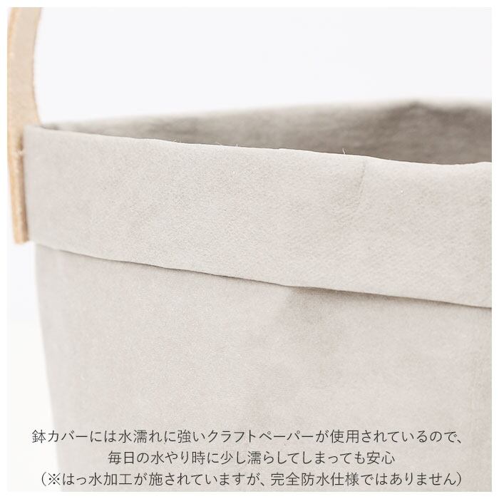 ・鉢カバーには水濡れに強いクラフトペーパーが使用されているので、毎日の水やり時に少し濡らしてしまっても安心。(※はっ水加工が施されていますが、完全防水仕様ではありません。)