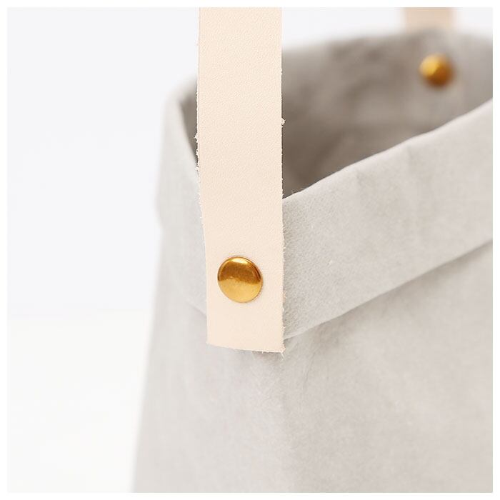 ・丈夫な特殊クラフト紙の鉢カバーに、素材感のある牛革ベルトを合わせた、手作り感あふれるペーパーポットプランター。