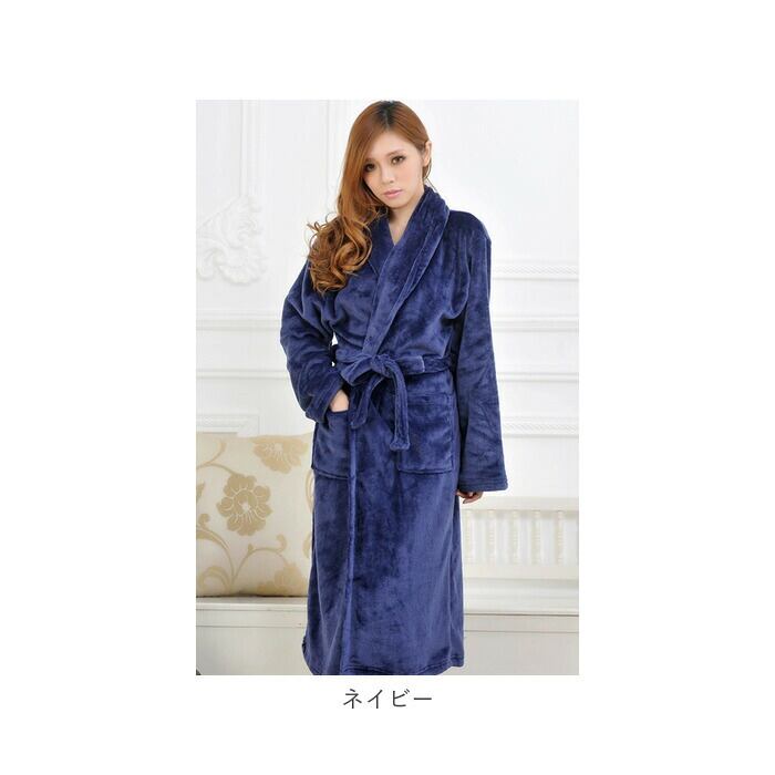 ・ふんわり柔らかい素材で、首元から下半身まで優しく包み込んでくれるバスローブ。