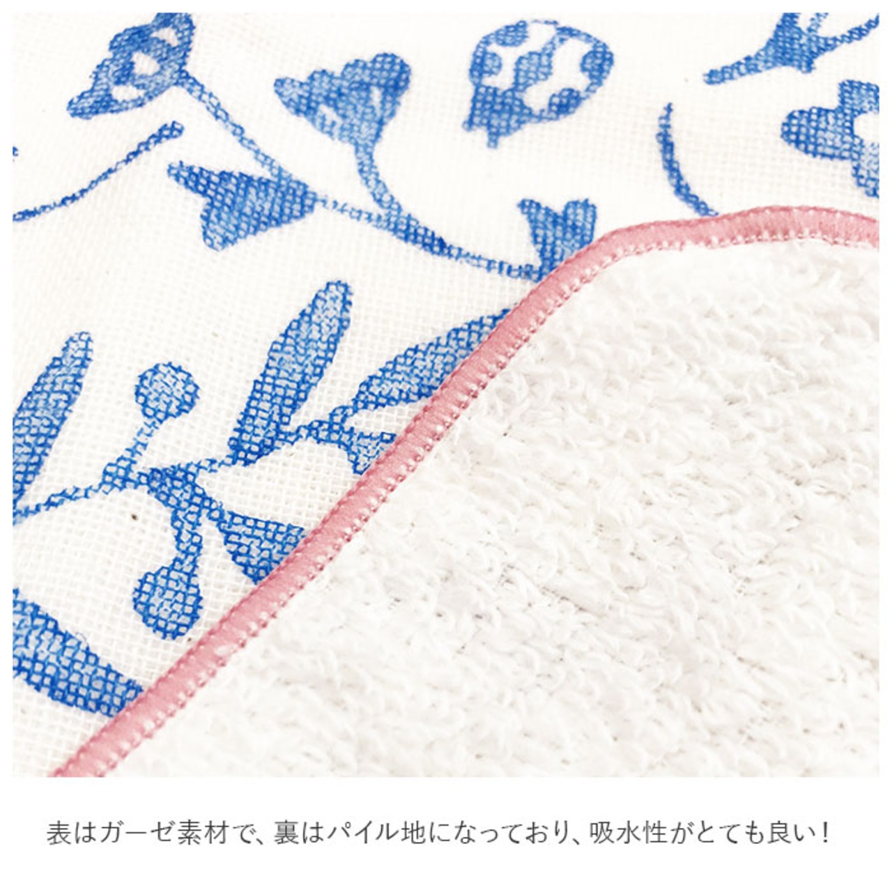 ・表はガーゼ素材で、裏はパイル地になっており、吸水性がとても良い!