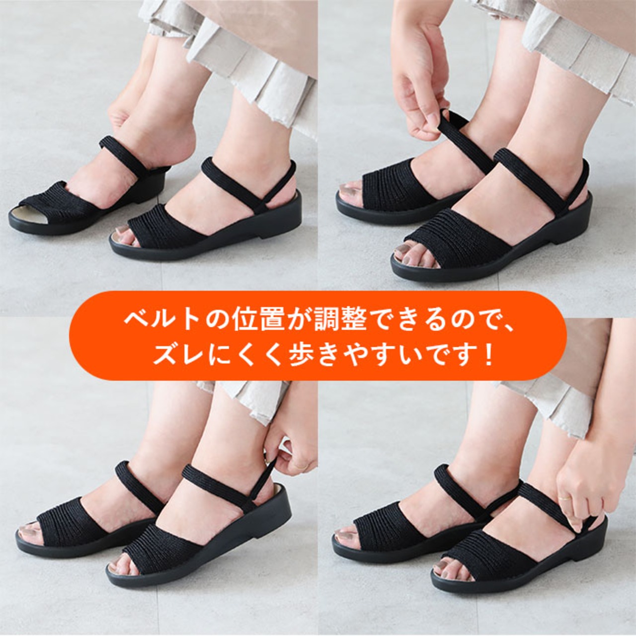 ・アッパーとベルト部分は、ナイロン製のニット素材を採用。伸縮性に優れているので包み込むような履き心地。