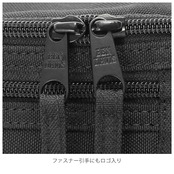 ・フロントには、ファスナーポケット×1、その横には取り外し可能なロゴテープ付き。