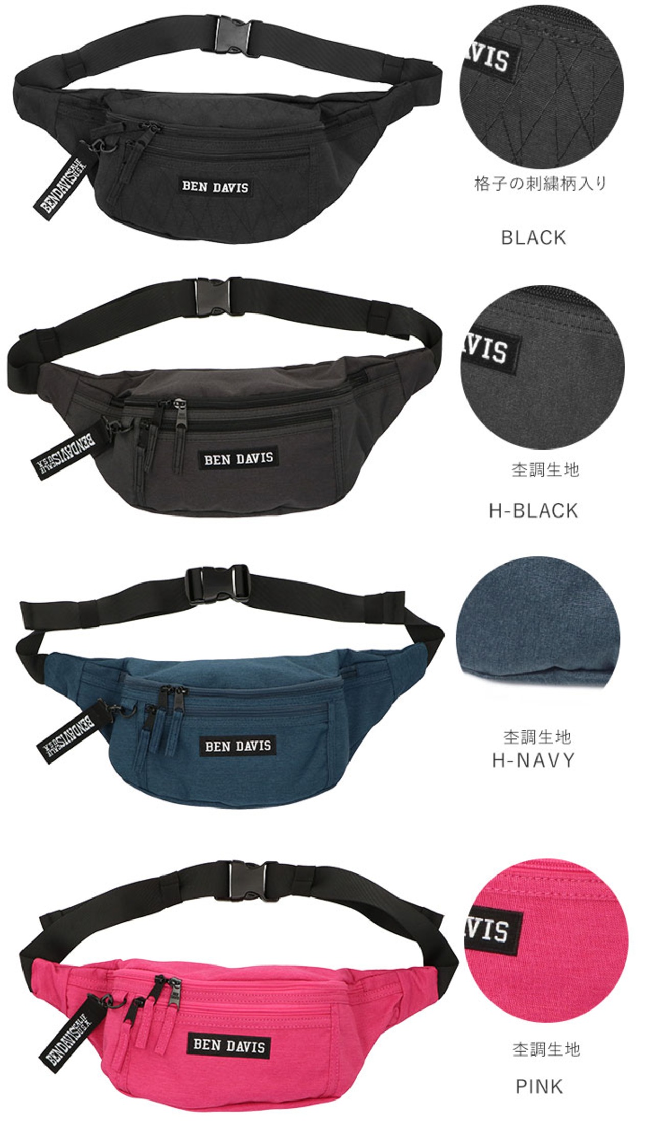 ・BEN DAIVISのロゴ刺繍がポイントのウエストバッグ。普段使いはもちろん、旅行時のサブバッグにも◎