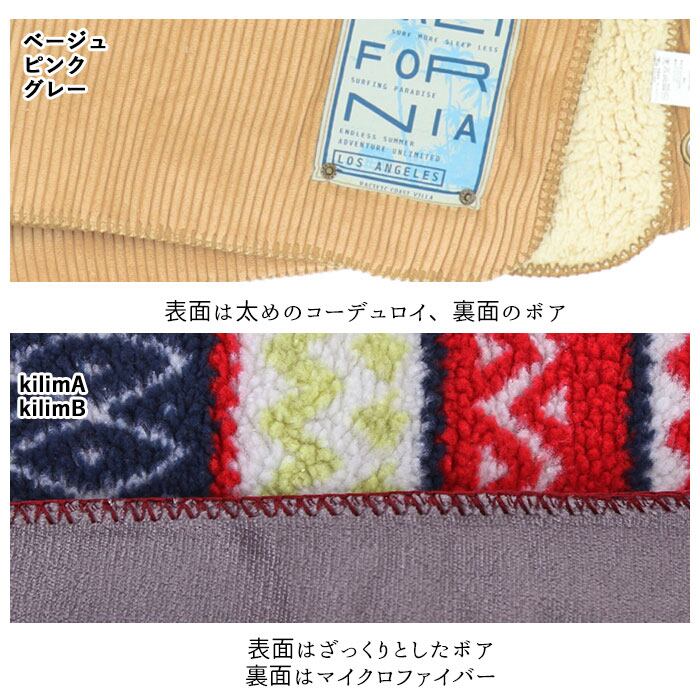 ・キリム柄は表面はざっくりとしたボア、裏面はマイクロファイバーのボアブランケット。