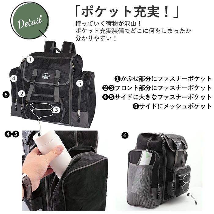 ・キャンプやハイキング等のアウトドアイベントにはもちろん、お子さまの修学旅行や林間学校でも活躍する大容量サイズ、46L〜58L。