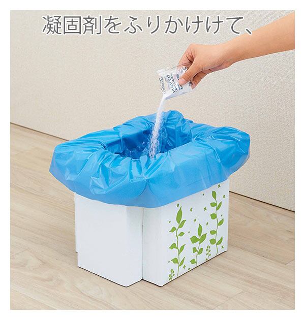 緊急時に便利な簡易組み立て式のトイレです。地震や災害、アウトドアでトイレが必要な時にも、車で渋滞時にトイレが欲しい時でも、10回分の凝固剤と袋付き。準備しておくと安心な商品です。耐荷重100kg