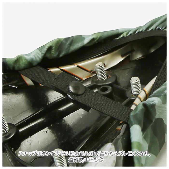 ・さらに、スナップボタンをサドル軸の後ろ側で留めたらズレにくくなり、盗難防止にも◎