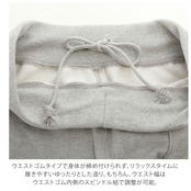 ・ウエストゴムタイプで身体が締め付けられず、リラックスタイムに履きやすいゆったりとした造り。もちろん、ウエスト幅はウエストゴム内側のスピンドル紐で調整が可能。