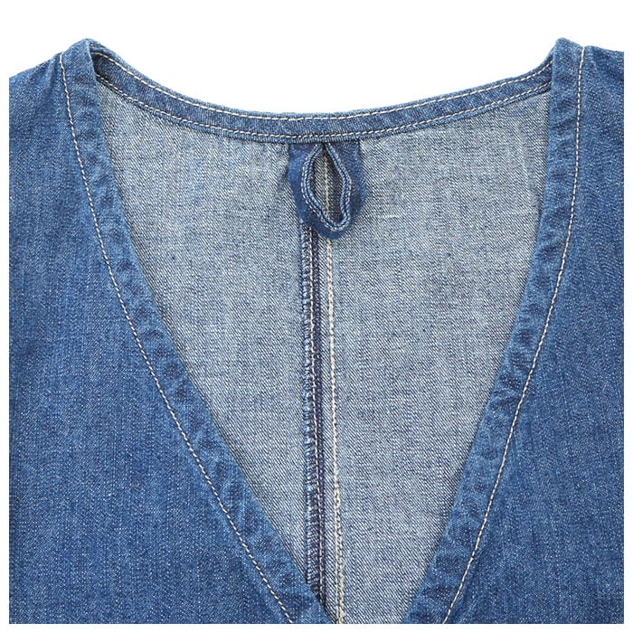・綿100%のデニム生地を使用。ごわごわしない適度な厚みの生地なので、落ち感のきれいな美シルエットに。