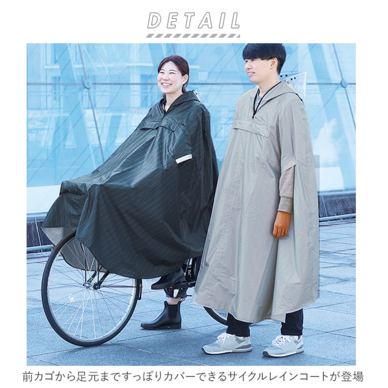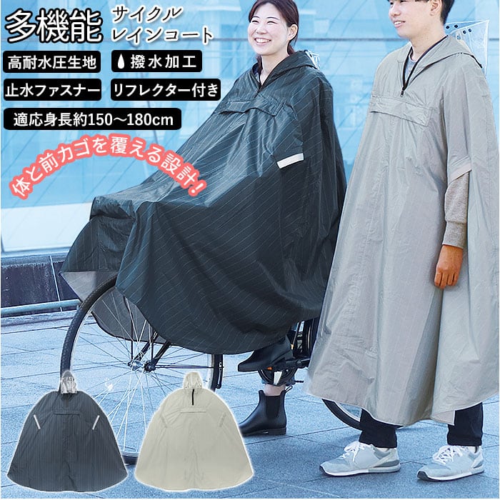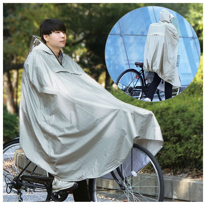 ・前カゴから足元まですっぽりカバーできるサイクルレインコートが登場。