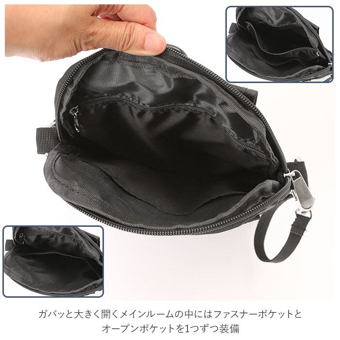・ガバッと大きく開くメインルームの中にはファスナーポケットとオープンポケットを1つずつ装備。