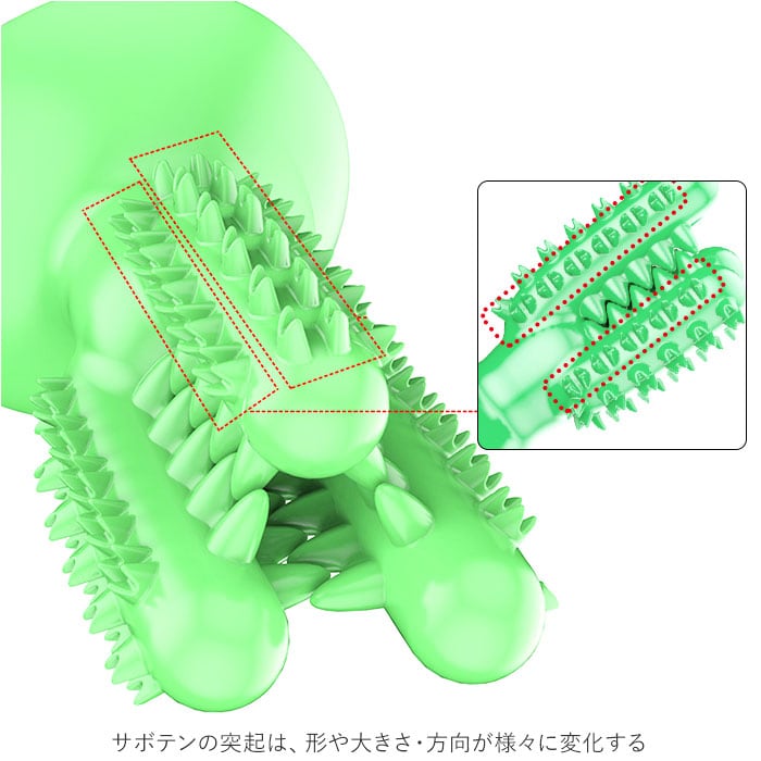 ・サボテンの突起は、形や大きさ・方向が様々に変化するので、ワンちゃんが沢山カミカミしても飽きずに遊んでくれる!ブラッシングが苦手なワンちゃんにオススメ。