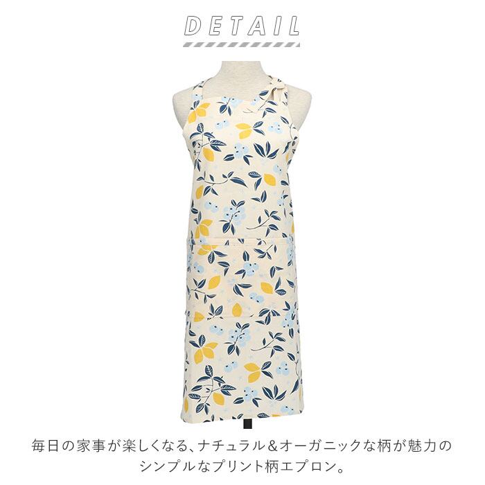 ・毎日の家事が楽しくなる、ナチュラル&オーガニックな柄が魅力のシンプルなプリント柄エプロン。
