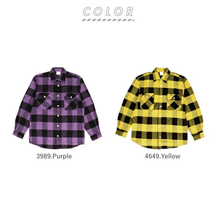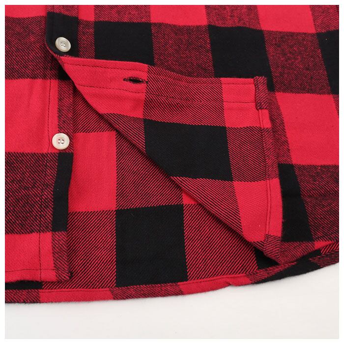・8オンスの程よい厚みのあるコットンフランネル生地を使用。大きなブロックチェック柄が印象的。