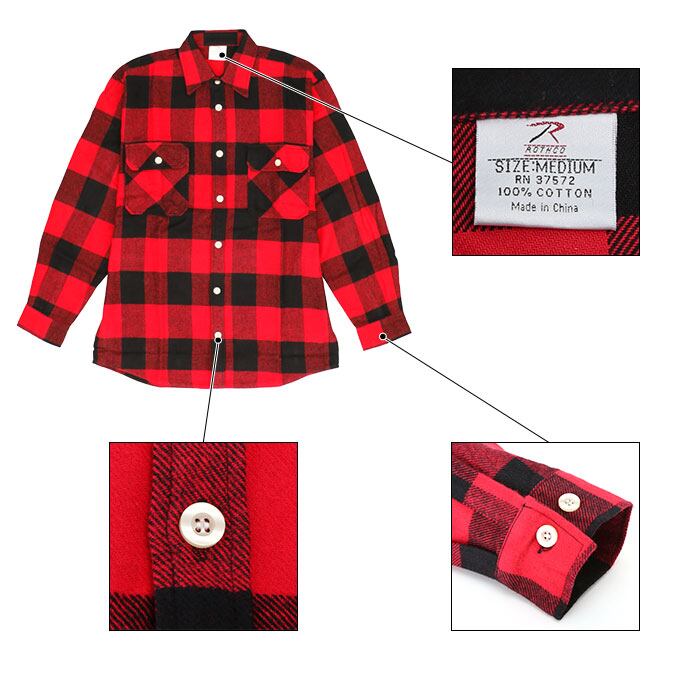 メンズ フランネルシャツ 通販 アメカジ ブランド ロスコ Rothco ネルシャツ 厚手 8oz 8オンス チェック ブロックチェック シンプル カジュアル Extra Heavyweight Flannel Shirt ミリタリー カジュアルシャツ トップス