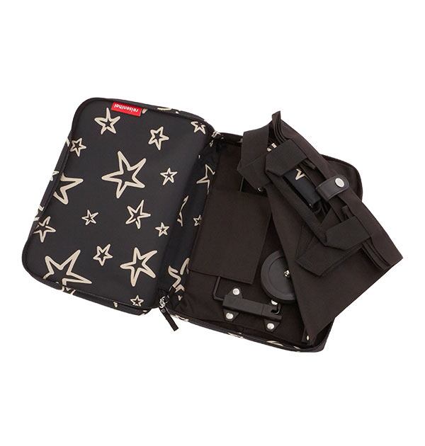 カートにもなるコンパクトなエコバッグです。普段は折りたためるのでコンパクトに持ち運べて、使う時には開けばコロコロ付きの長めのバッグとして使えます。足つきで自立するのでちょっと置くのにも便利。50センチ以上の長さがあるので、長めのものを入れられます。コロコロ付きで移動も楽。