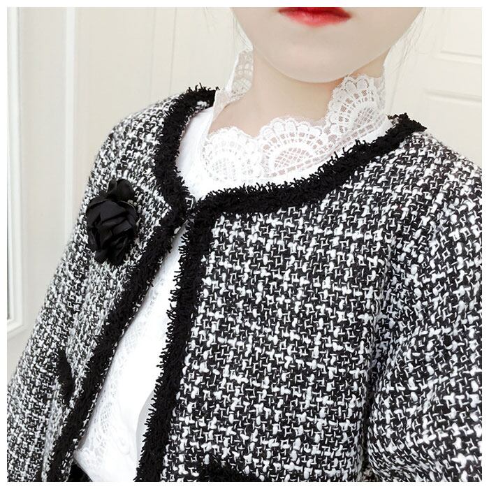 ・ジャケットの胸元には、取り外し可能なコサージュ付き。