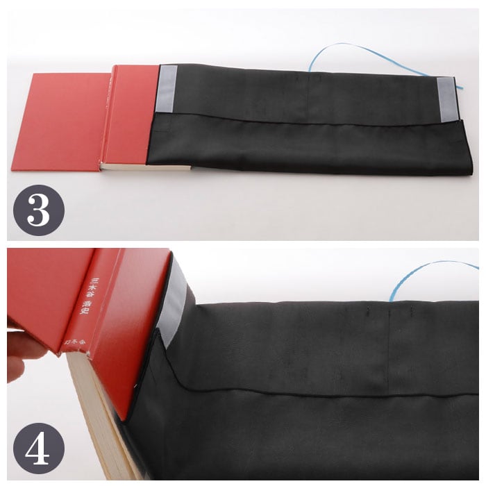 ※本製品は様々な規格の書籍やノートなどに対応可能ですが、装着する本によっては、構造上カバーを折り返して装着するため装着時に分厚くなる可能性があります。