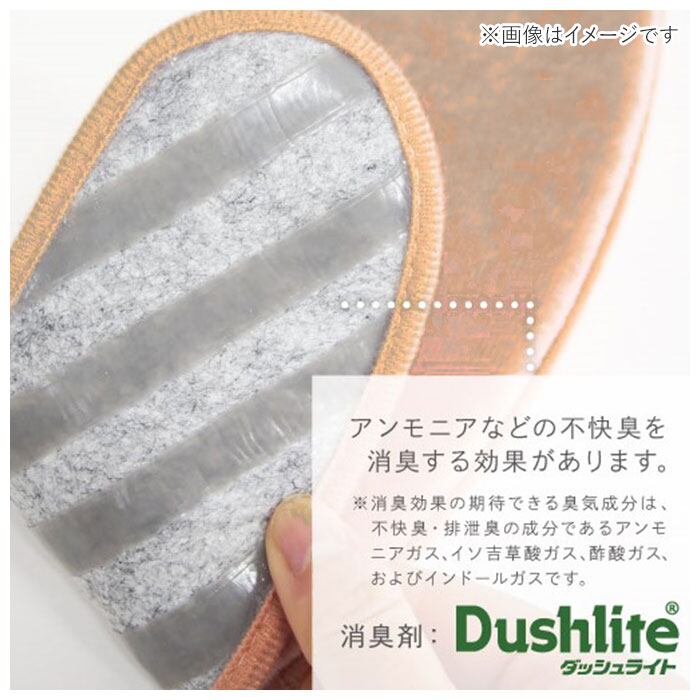 ・裏面の不織布に(株)シナネンゼオミック社が開発した消臭剤「ダッシュライト(R)」を使用。繊維に、においの成分が触れることによりアンモニアガスや酢酸ガスなどの嫌なにおいを消臭。