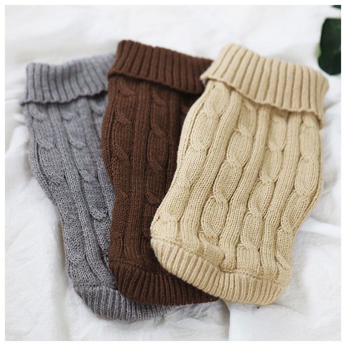 ・飼い主さんのファッションともコーディネートしやすい、お洒落感抜群なケーブル編みデザイン。
