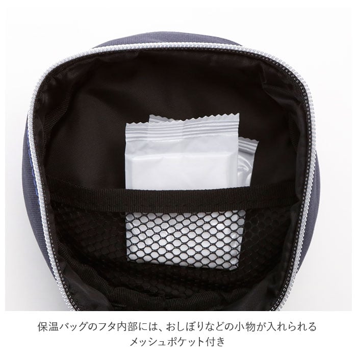 ・保温バッグのフタ内部には、おしぼり等の小物が入れられるメッシュポケット付き。