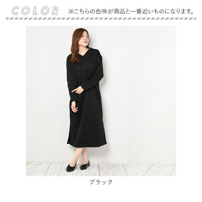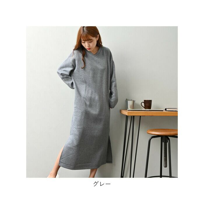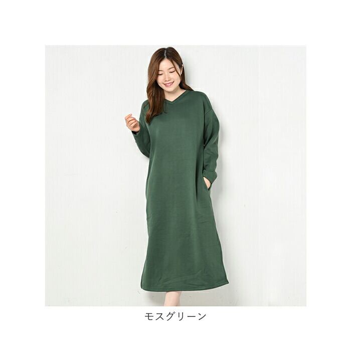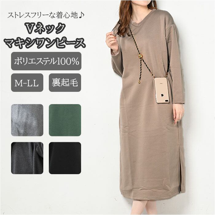 ・ストレスフリーな着心地♪裏起毛で仕上げた、Vネックマキシワンピース。