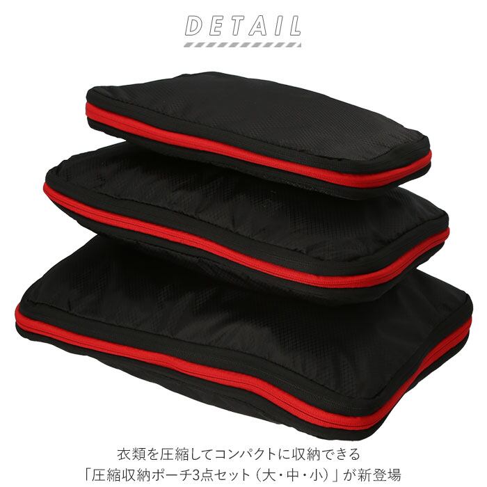 ・衣類を圧縮してコンパクトに収納できる「圧縮収納ポーチ3点セット(大・中・小)」が新登場。