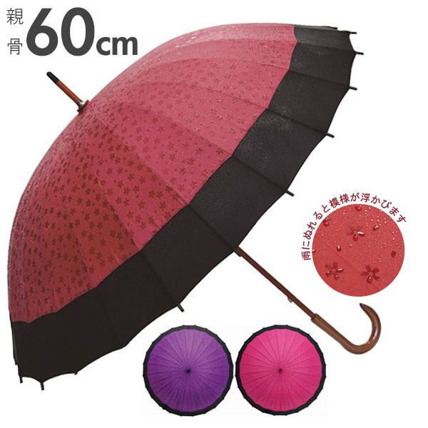 和傘 赤 J 女性用 定番 カサ かさ 桜 傘 傘 撥水 手開き 軽量 かわいい 和 長傘 おしゃれ ★レディース santos サントス 60cm 24本骨