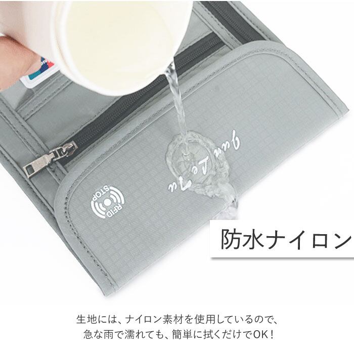 ・生地にはスキミングを防止するRFIDブロッキング素材を使用し、パスポート情報やクレジットカード情報をしっかりと保護。旅先で犯罪被害に遭わないための安心設計。