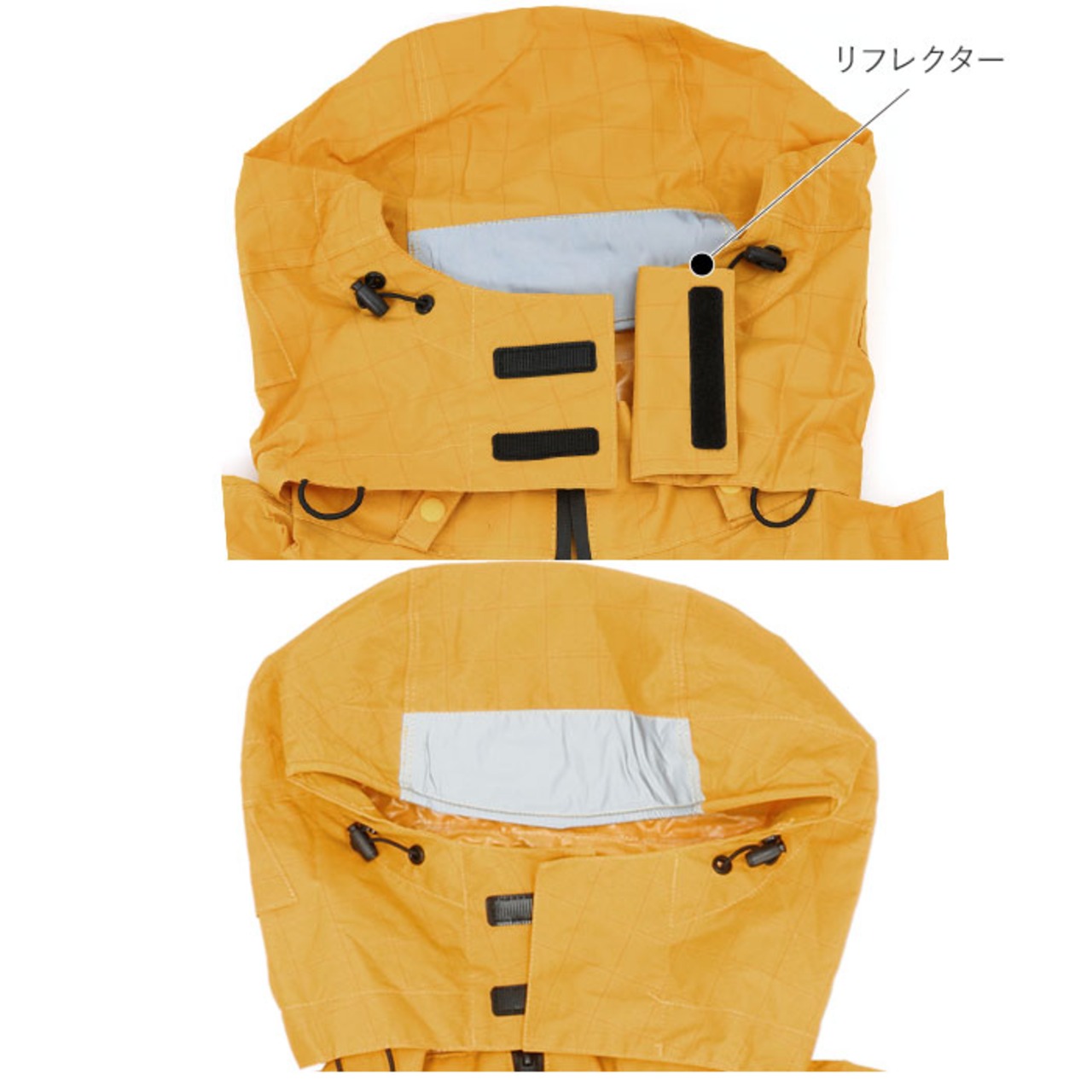 ・フードのフチには調節可能なドローコード。ツバ部分は視認性を高めるリフレクター付き。