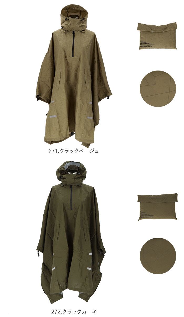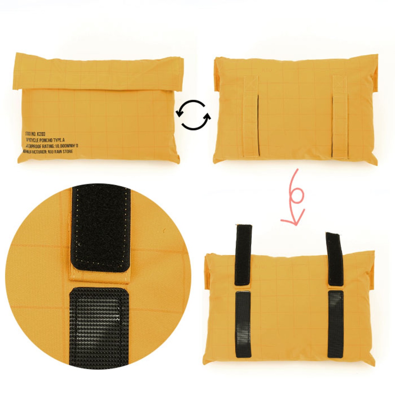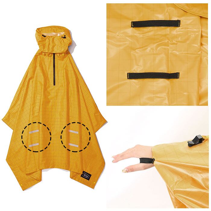 ・袖口裏側の付属クリップをフロントのループに挟むことで、ポンチョ両サイドの生地のバタつきを防止。