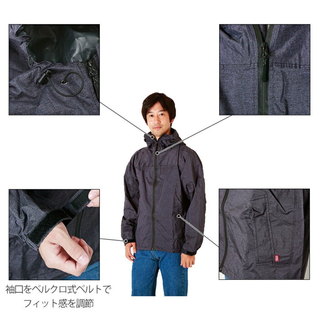 ・優れたストレッチ性で、肘や肩の動きにもストレスフリー。通勤で自転車を漕ぐ時や、登山などのアウトドアアクティビティー、雨天時に荷物を運搬するなどの作業時に大活躍。