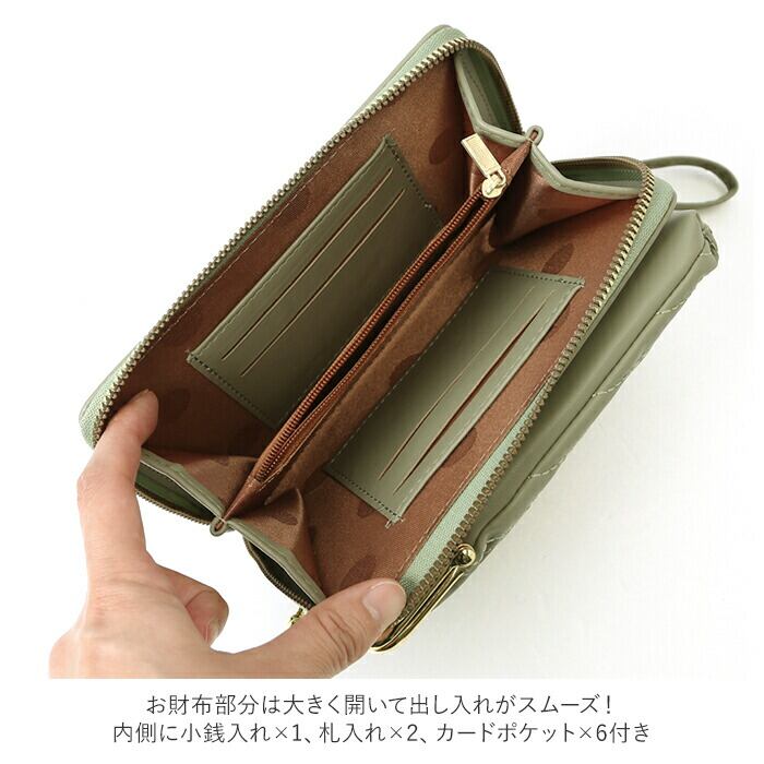 ・お財布部分は大きく開いて出し入れがスムーズ!内側に小銭入れ×1、札入れ×2、カードポケット×6付き。