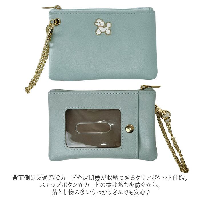 ・背面側は交通系ICカードや定期券が収納できるクリアポケット仕様。スナップボタンがカードの抜け落ちを防ぐから、落とし物の多いうっかりさんでも安心♪