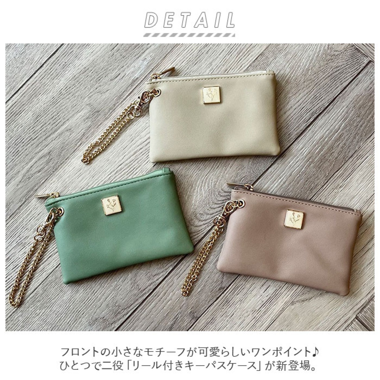 ・フロントの小さなモチーフが可愛らしいワンポイント♪ひとつで二役「リール付きキーパスケース」が新登場。