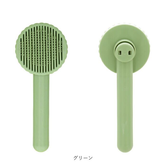 ・ヘッド部背面のボタンを押すと台座が浮き上がり、くし歯に付いたペットの毛をワンプッシュ除去!あとは毛玉をポンッとくずかごに捨てるだけ!