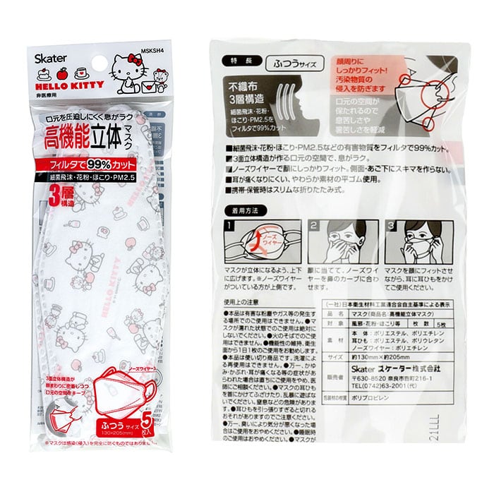 キャラクター大人用 高機能 不織布 立体マスク 5枚入