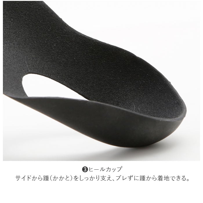 ■ヒールカップ=サイドから踵(かかと)をしっかり支え、ブレずに踵から着地できる。