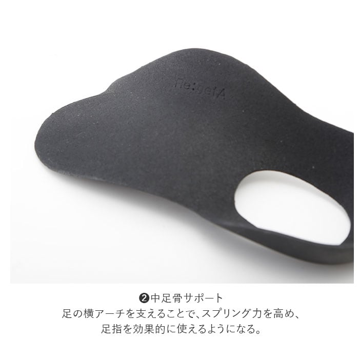 ■中足骨サポート=足の横アーチを支えることで、スプリング力を高め、足指を効果的に使えるようになる。