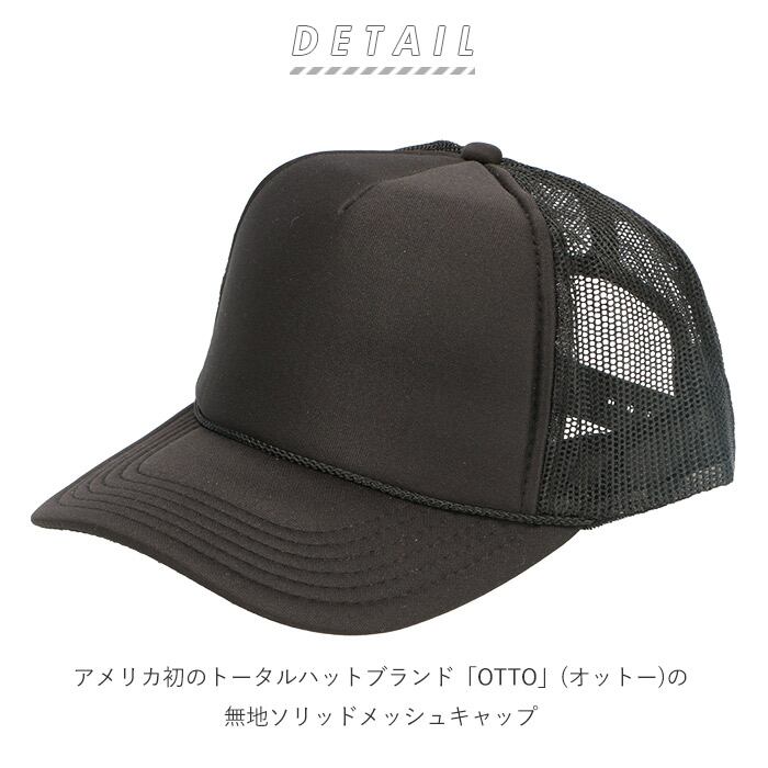 ・アメリカ初のトータルハットブランド「OTTO」(オットー)の無地ソリッドメッシュキャップ。