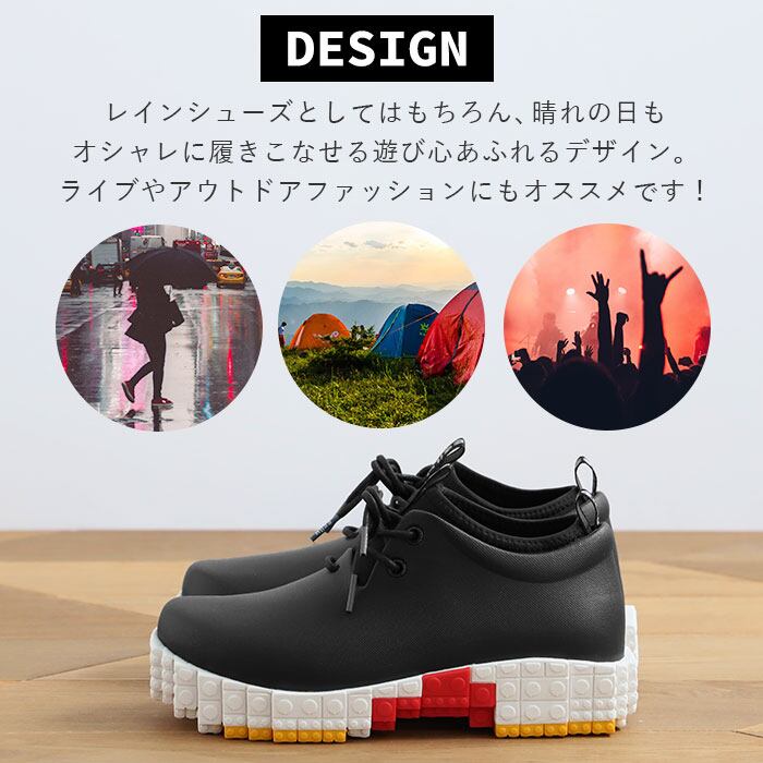 ・レインシューズとしてはもちろん、晴れの日もお洒落に履きこなせる遊び心あふれるデザイン。