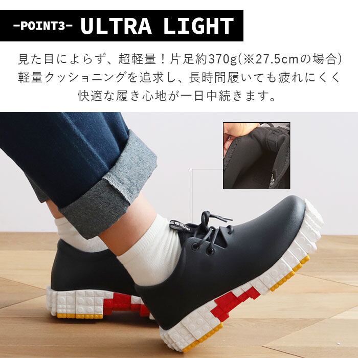 ・耐水性に優れたアッパーで、雨の日もアクティブに。