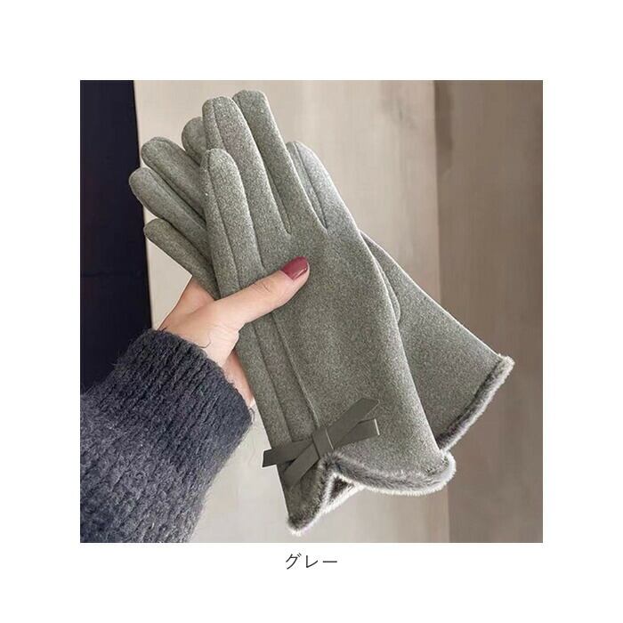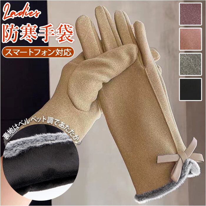 スマホ手袋 通販 レディース リボン 手袋 手ぶくろ スマホ対応 ボア 5本指 タッチパネル操作可能 スマホタッチ対応 防寒 防風 保温 シンプル 寒さ対策 おしゃれ かわいい