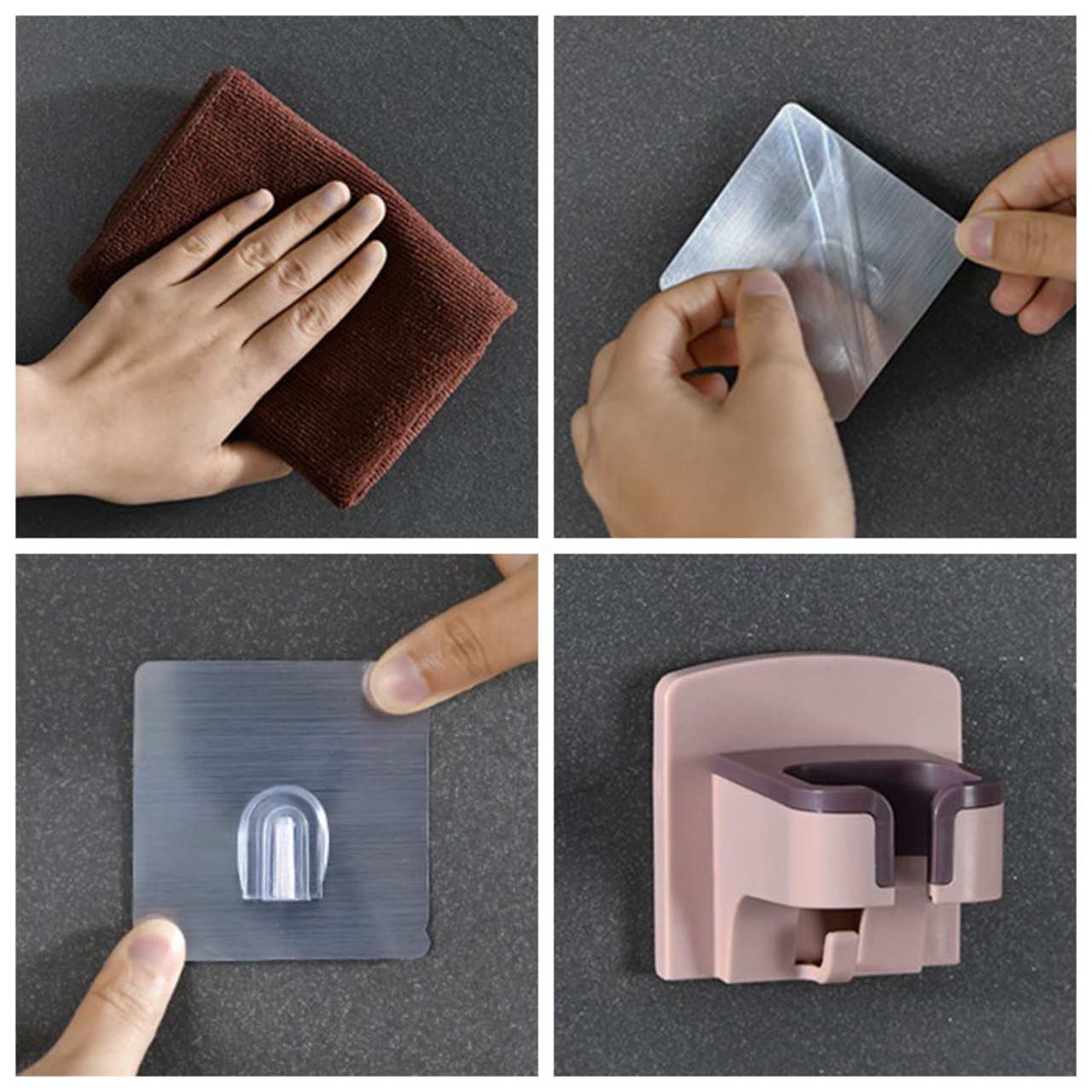・付属の粘着シートを壁に貼り付け、シートのフック部分に本体をセットするだけで設置が簡単。壁面に穴をあける必要がないのも嬉しいポイント。
