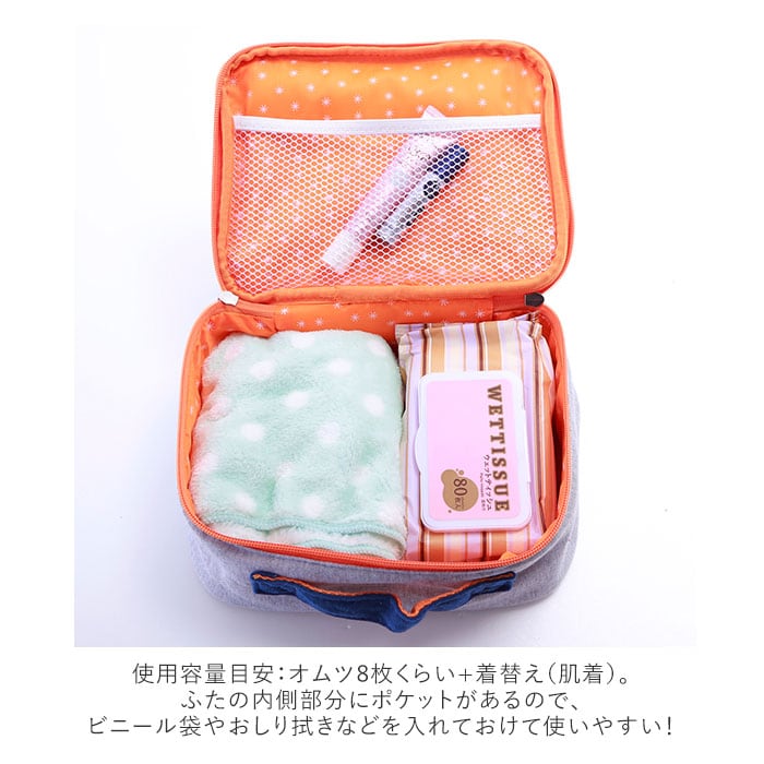 ・使用容量目安:オムツ8枚くらい+着替え(肌着)。オムツ入れ以外に旅行の着替えなどを入れるのにもGood!