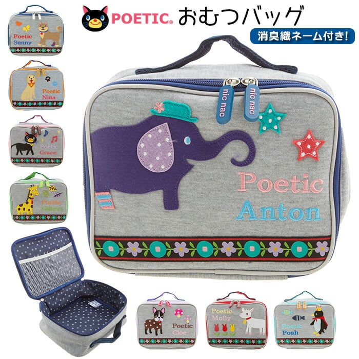 オムツポーチ 消臭 通販 おしゃれ おむつポーチ キャラクター 大きめ 大容量 出産祝い 誕生祝い おむつバッグ スウェット生地 おむつ 収納 オムツ 持ち運び 消臭機能付き 軽量 軽い かわいい 動物 アニマル ギフト プレゼント POETIC ポエティック KNICK KNACK ニックナック