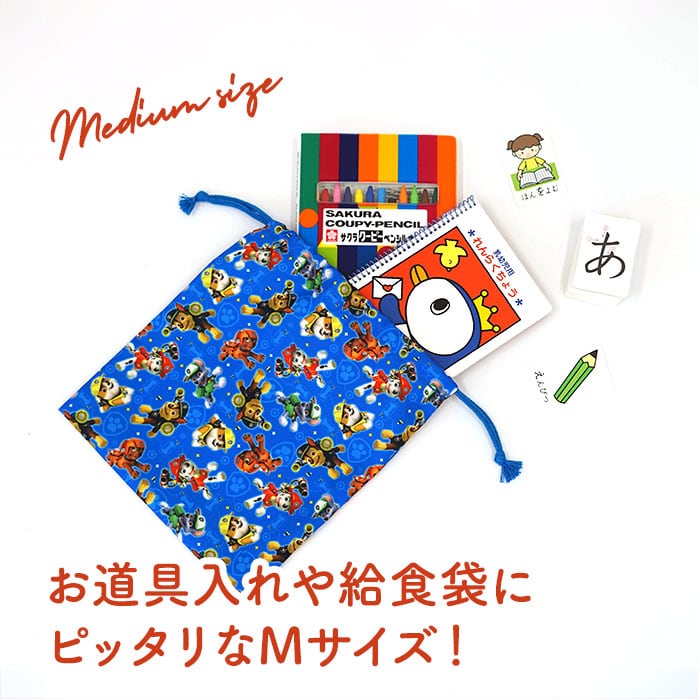 ・給食やお昼ご飯に必要なアイテムの収納にぴったりな巾着(Mサイズ)が登場。